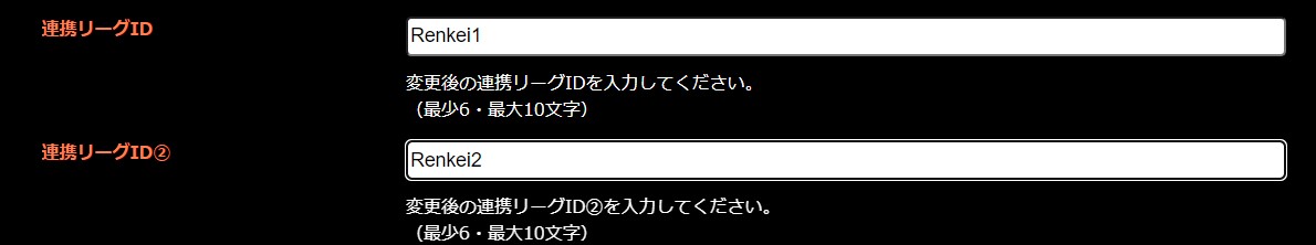 各リーグ編集画面の「連携リーグID」「連携リーグID②」に紐づけたいリーグIDを設定します。