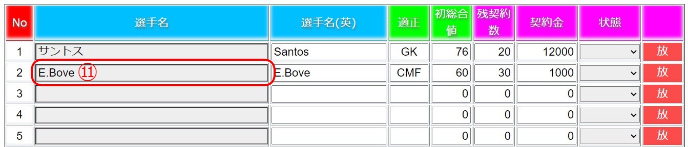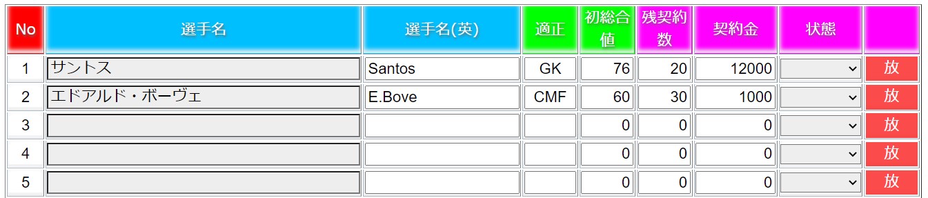 放出状態のみ保存されます。選手を獲得する際は必ず「③獲得ボタン」を押下する必要があります。