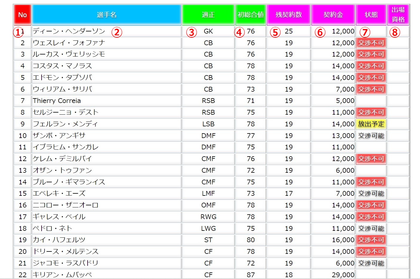 戦力外となっている選手です。優先的に放出されるため、必要な場合は交渉を行いましょう。